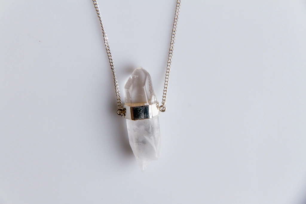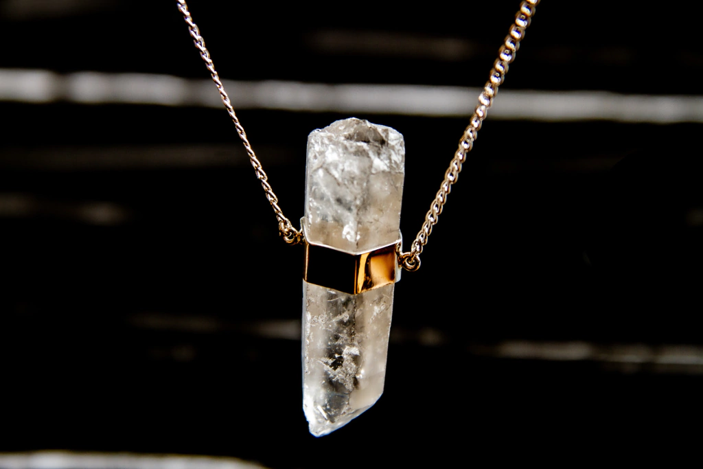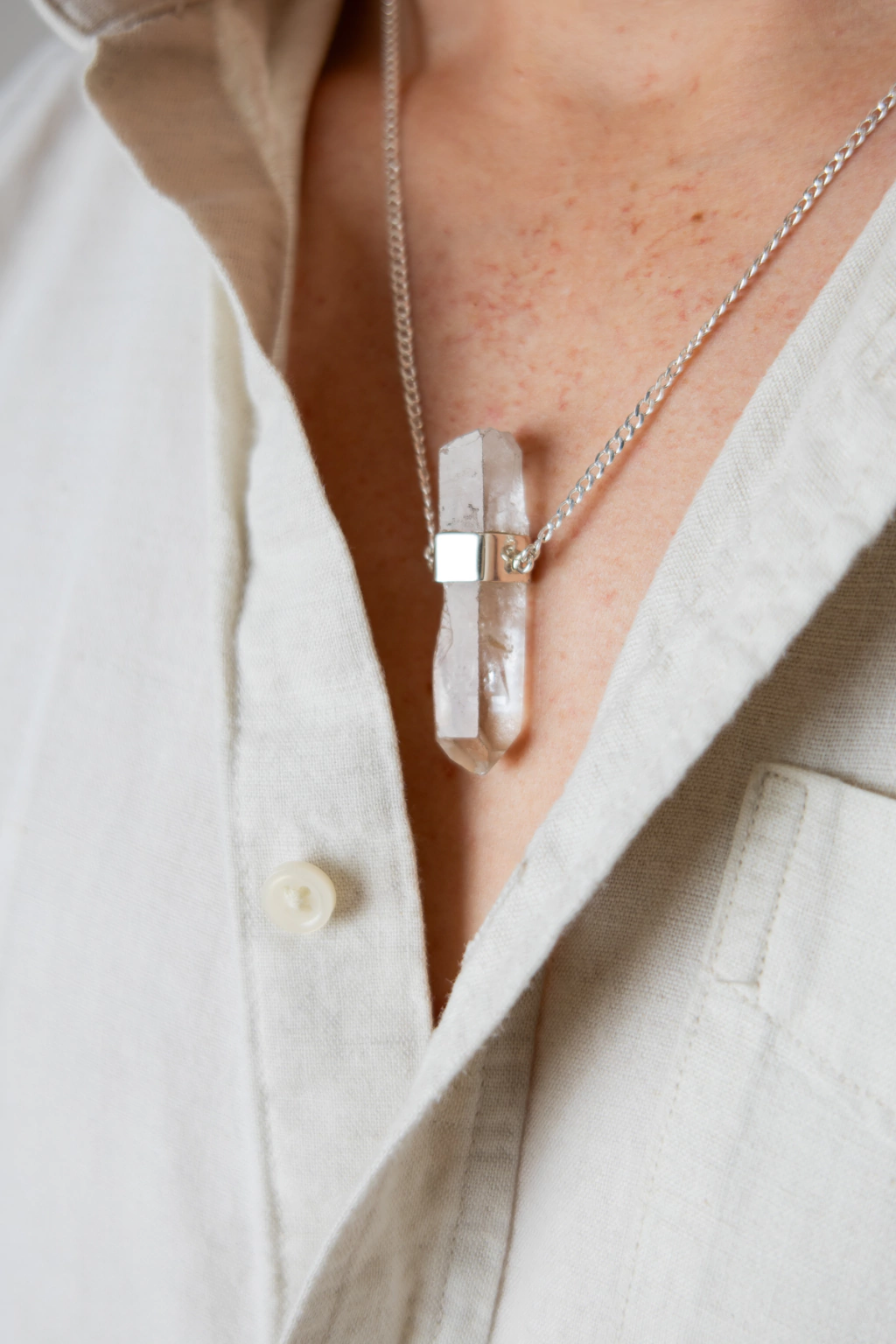 Aroa es un modelo dónde quisimos conservar el cuarzo con dos puntas lo más natural posible, por lo que cada pieza es totalmente única, varía en su tamaño y su forma.